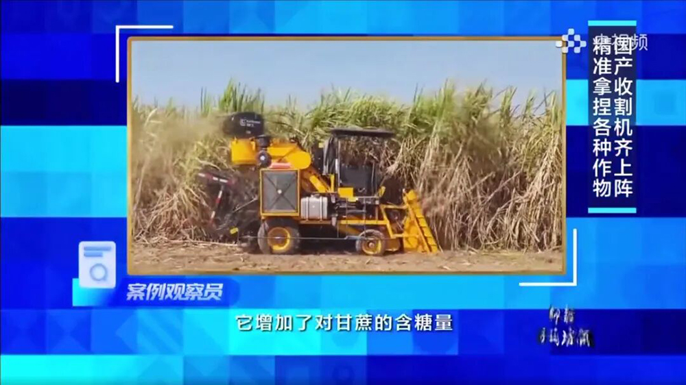 节目介绍,包括柳工S935A甘蔗收获机在内的国产甘蔗收获机,开发应用了浮动装置,能保持切根的位置正好,并且在切根后实现整杆柔性输送,保证不伤害甘蔗。