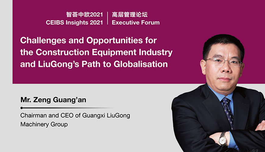 Please join us for our upcoming CEIBS Executive Forum on June 12, 2021, with Mr. Zeng Guang’an, Chairman and CEO of Guangxi LiuGong Machinery Group, who will give a lecture on Challenges and Opportunities for the Construction Equipment Industry and LiuGong’s Path to Globalisation.