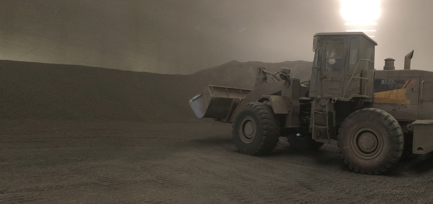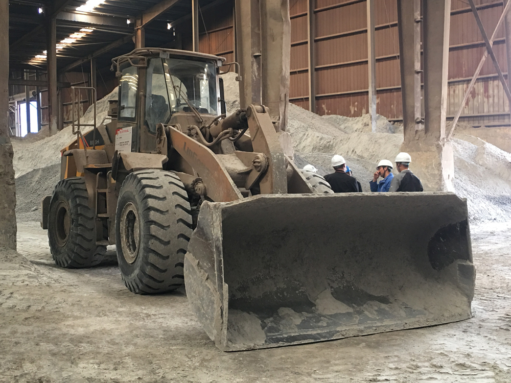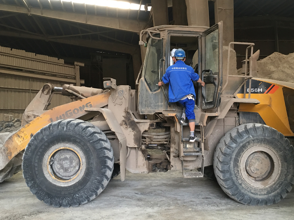 在走访过程中,我们了解到厂内还有一台高机龄柳工设备正在料仓内生产作业。因现场的作业环境尘土过大,工况较为恶劣,在余总的带领下,我们在做好了充分的安全保护措施后有幸进入到生产车间,一睹柳工855N的威风。
