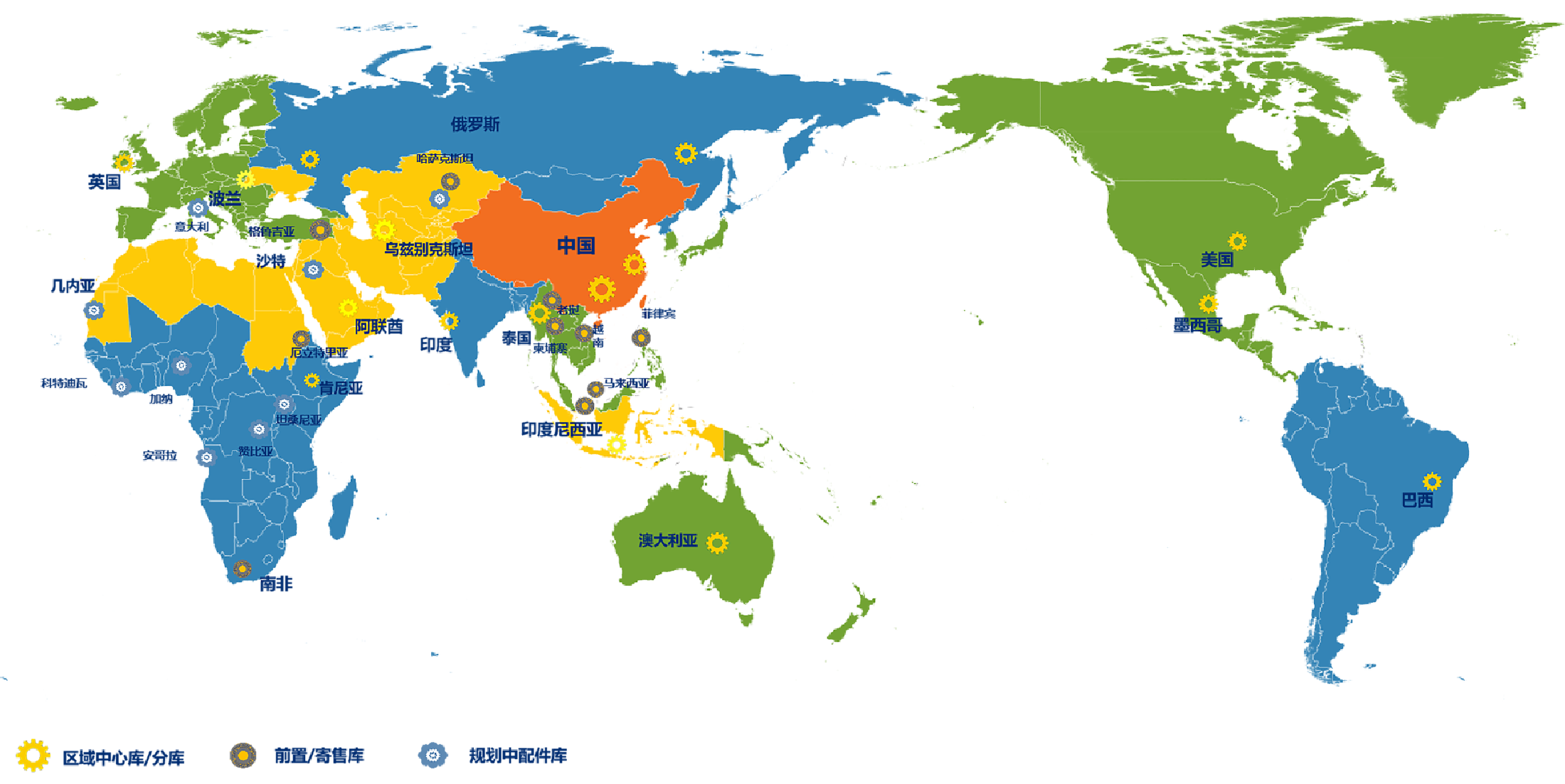 为了满足柳工全球客户的配件需求,柳工在全球设立 10个配件中心库、 13个区域分库、海内外前置仓&寄售仓 240+个网点,
